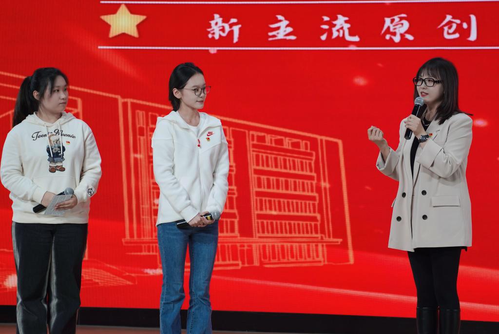活动展映了一系列优秀的原创文艺作品,并邀请主创团队上台分享创作背后的故事。活动按照“青春书” “山河志” “传承路”三个篇章依次展开。在“青春书”篇章中,主创团队代表及学生分享了如何将学习党的二十大精神融入歌曲、微电影等作品中,呼唤新时代青年挺膺担当的创作历程。